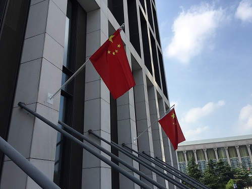 斜插旗杆安装完成